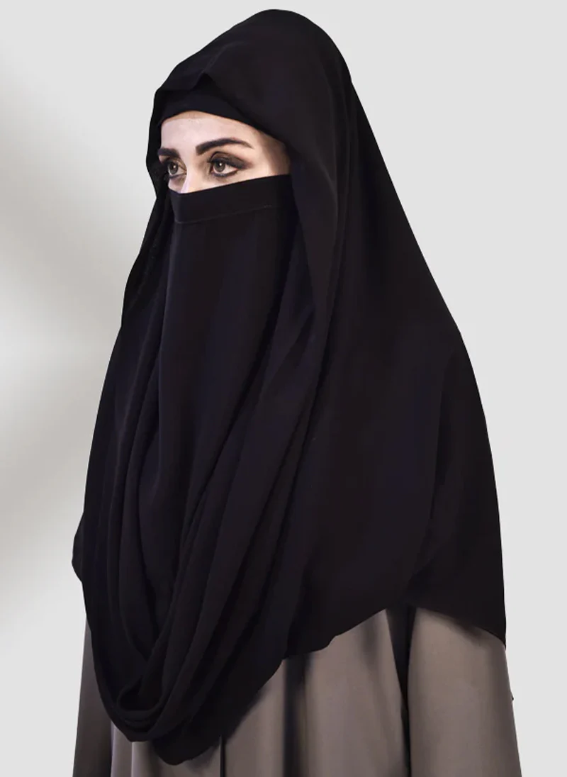 This ready to wear Air Line Scarf adds a touch of elegance to any outfit. Made with premium quality fabric, our black veil scarf exemplified comfort and modesty along with luxury. It is designed to complement any outfit and is a go-to choice or any occasion, whether it’s a casual gathering or a special event.
