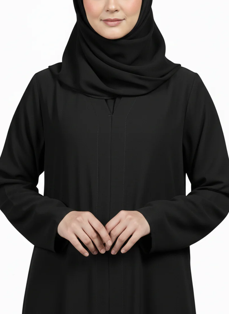 The Arabis Plain Front-Open Abaya is tailored from premium Nida fabric, offering a soft, flowy drape with an elegant, modest look. Its simple, clean design makes it perfect for everyday wear, work, or formal occasions. The front-open style adds comfort and ease, while the high-quality stitching ensures durability and a graceful fall.