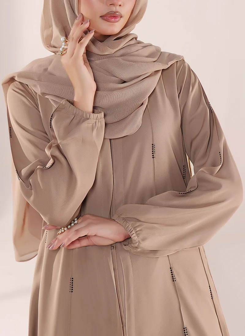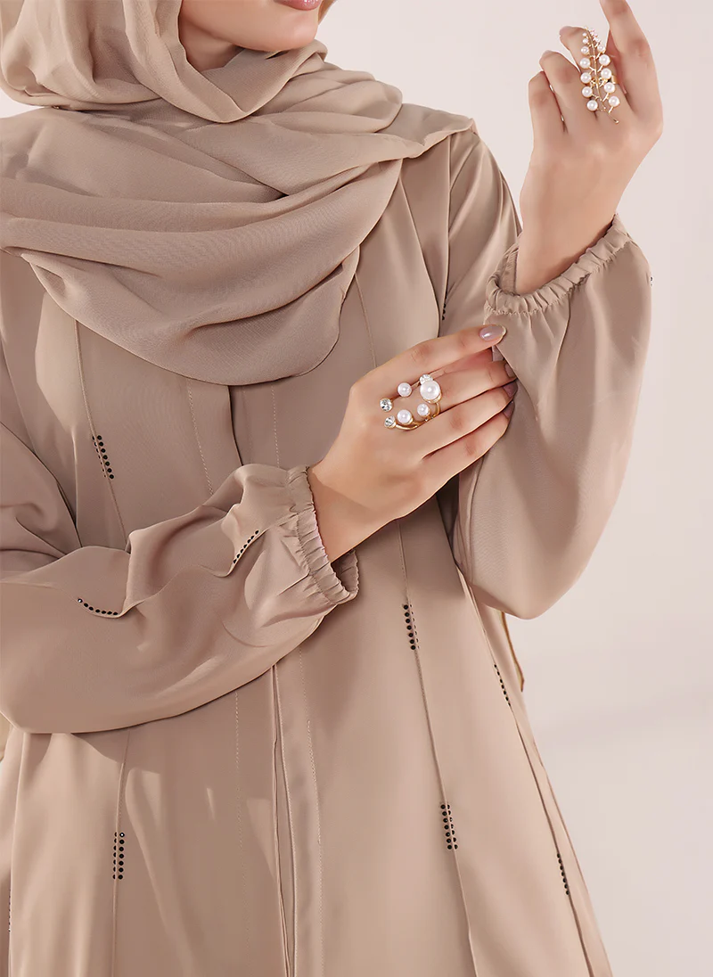 Experience refined elegance with Hijab ul Hareem’s Desert Glow Stone Work Abaya, crafted from premium Nida fabric. The soft beige tone and delicate stone embellishments create a graceful and sophisticated modest look.