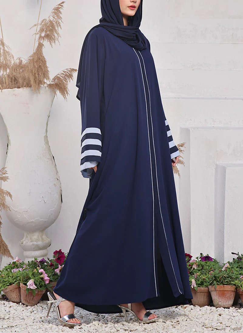 Vibrant Emerald Green: The rich Navy Blue color adds a vibrant and regal touch to the Abaya, making it a standout choice for special occasions or everyday elegance.