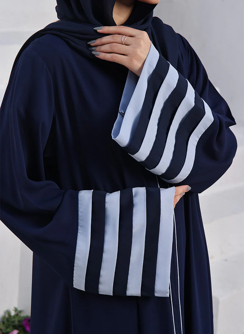 Exquisite Button Work: The intricate button work on the front enhances the allure of the Celeste Navy Blue fabric, creating a captivating visual appeal that sets this Abaya apart.