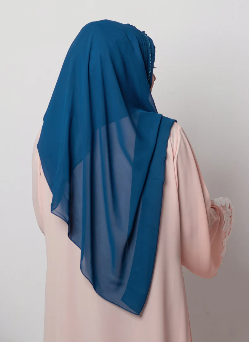 The combination of turquoise and silver serves as visually captivating, adding a subtle layer of glamour and making this hijab a perfect choice for elevating your style and charm. The overall design also offers a graceful drape without compromising on your comfort. Its unique blend of simplicity, support and modern style makes it an essential addition to your wardrobe.