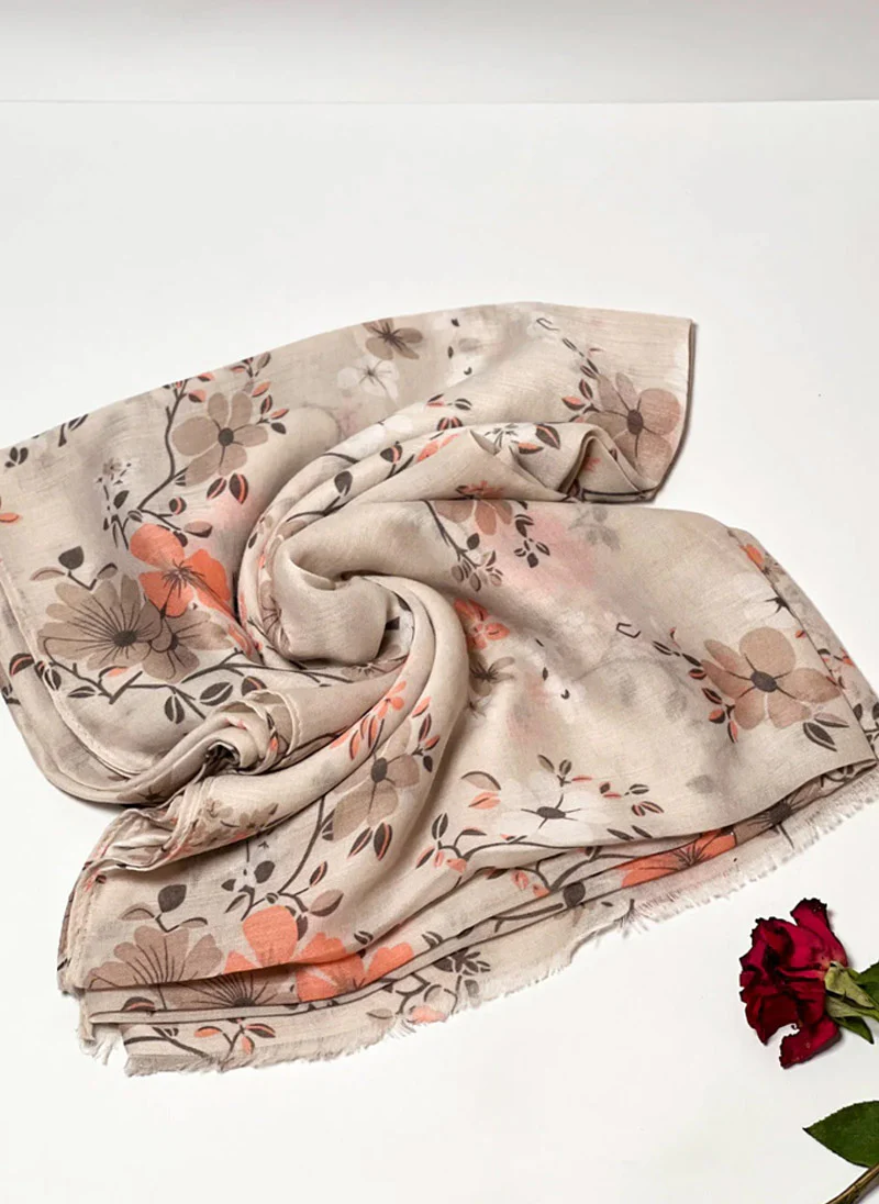 Floral Hijab-Light Brown