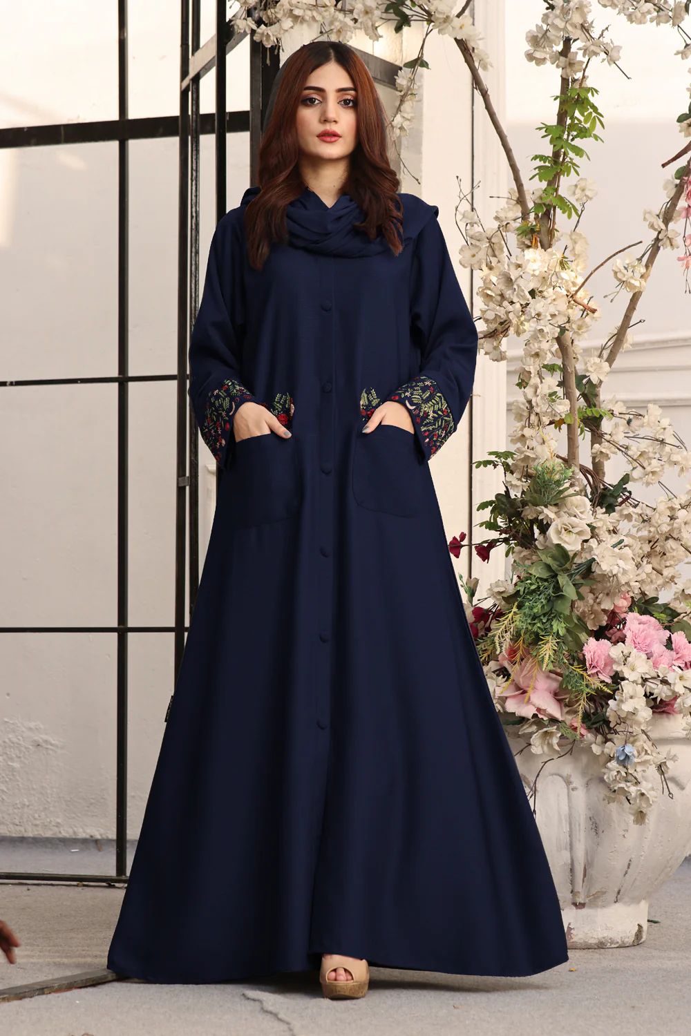 Luxurious Zoom Fabric: Crafted from premium Zoom fabric, this Abaya ensures opulent comfort and drapes gracefully. It not only provides comfort but also presents a timeless aesthetic, enhancing your modest fashion statement.
