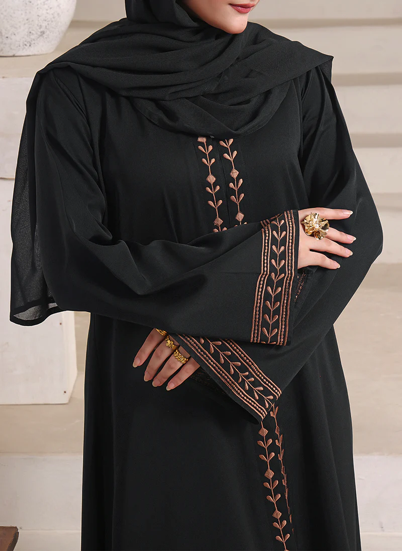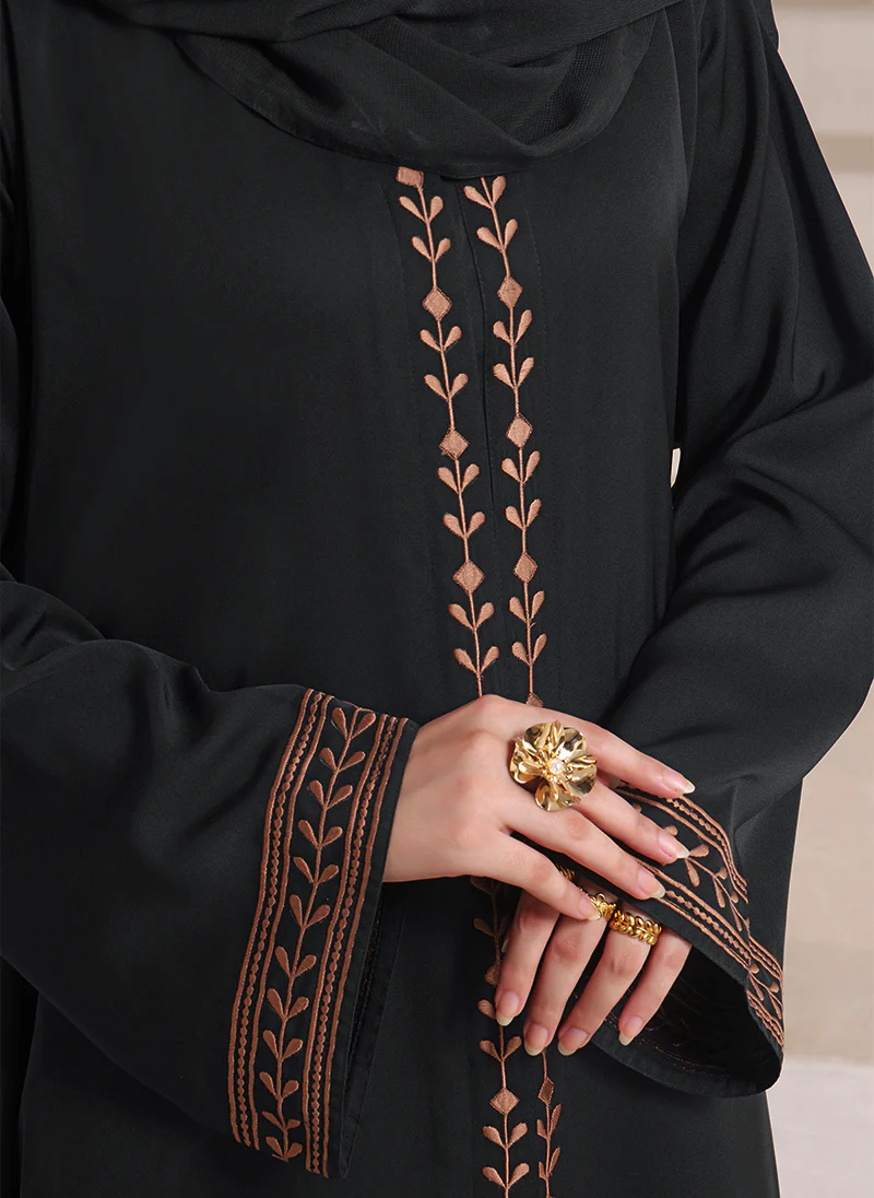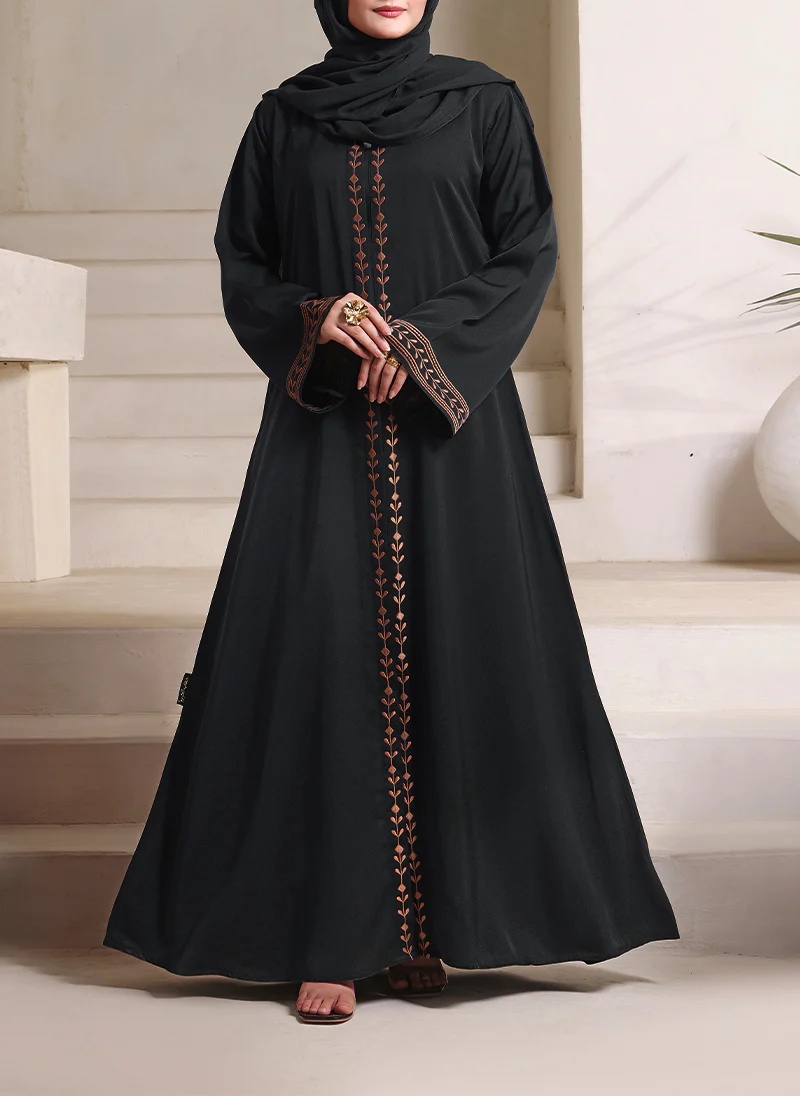 Elegant and graceful, this Hijab ul Hareem Abaya is crafted from premium Nida fabric with beautiful embroidered detailing on the front and sleeves. Perfect for modest fashion, formal events, and everyday wear, this abaya from Hijab ul Hareem combines comfort, elegance, and sophistication — a must-have for every modest wardrobe