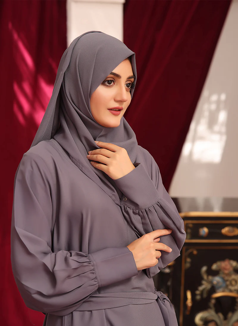 Elevate your style with the Nooriya Gray Abaya. Its unique shade and double georgette fabric make it a versatile addition to your collection.