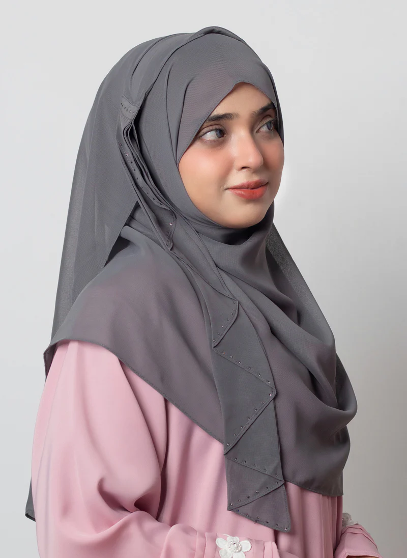 This hijab comes in a classic shade of grey and offers versatility for various occasions. Crafted from luxurious georgette fabric, this piece from our collection offers light weight and a graceful, charming drape ensuring comfort with style with hijabulhareem.