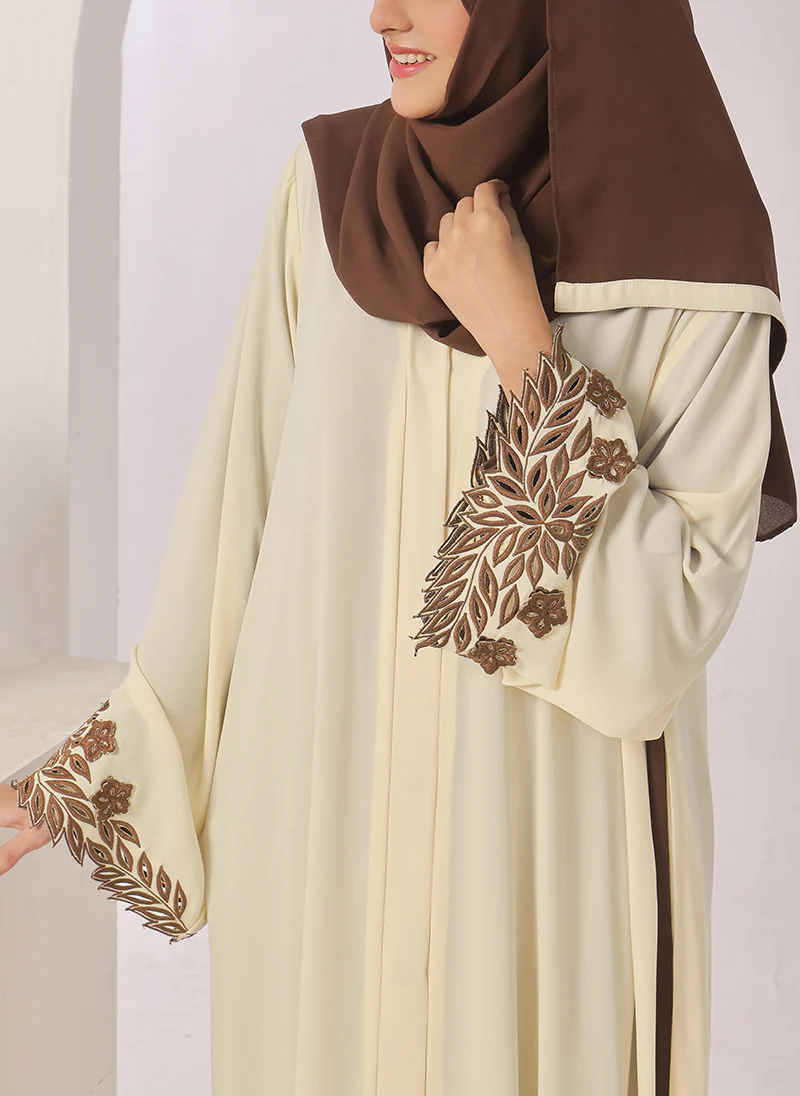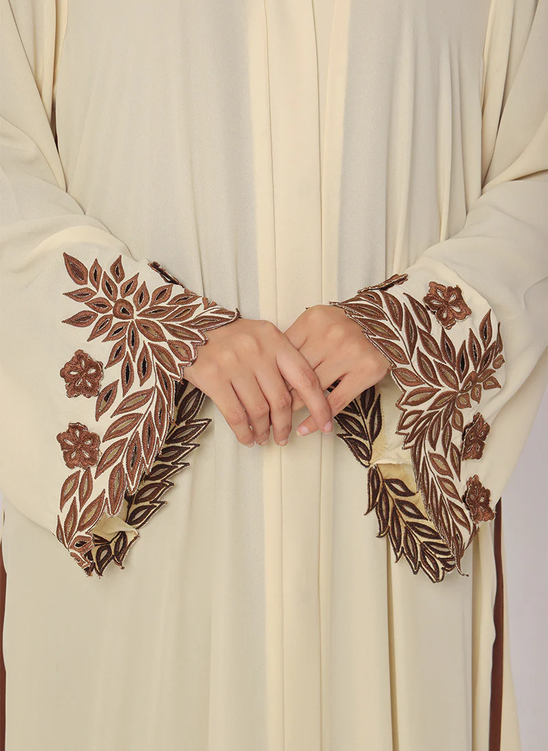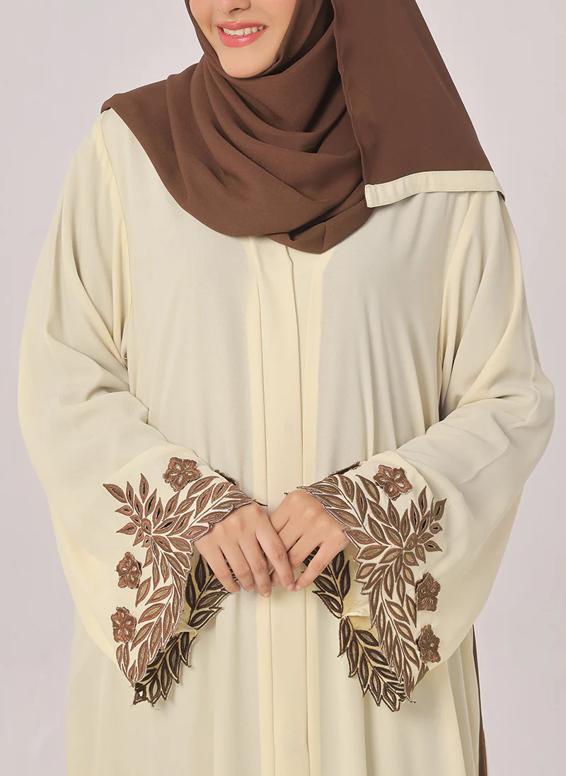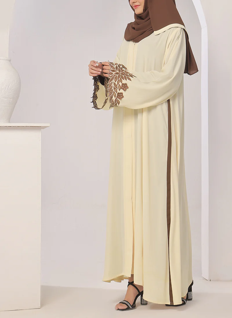 Note: If customer changes the Abaya color rather than choosing the same color given in the picture, Embroidery and stones color will be change of same or contras color depends on the design of the Abaya. Any printed fabric placed on the Abaya would be change at the time of order if not available in Stock.