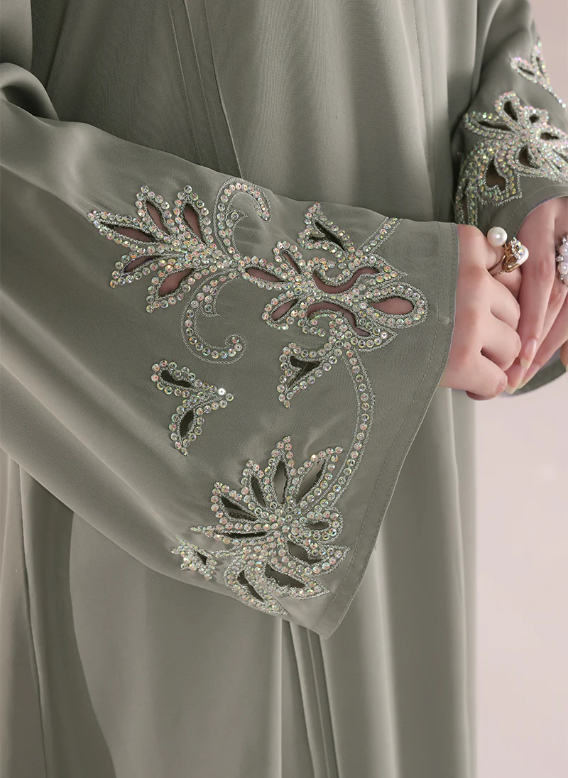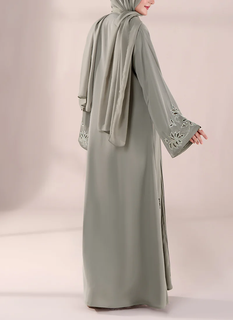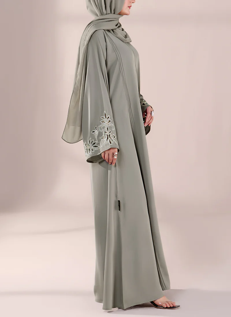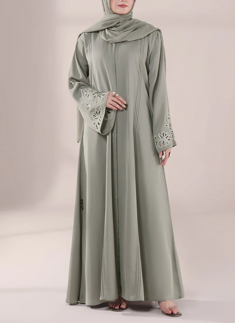 Experience timeless elegance with Hijab ul Hareem’s Handwork Nida Abaya, beautifully designed for a graceful and modest look. Made from premium Nida fabric, this abaya offers a soft, luxurious drape — perfect for everyday wear or special occasions.
