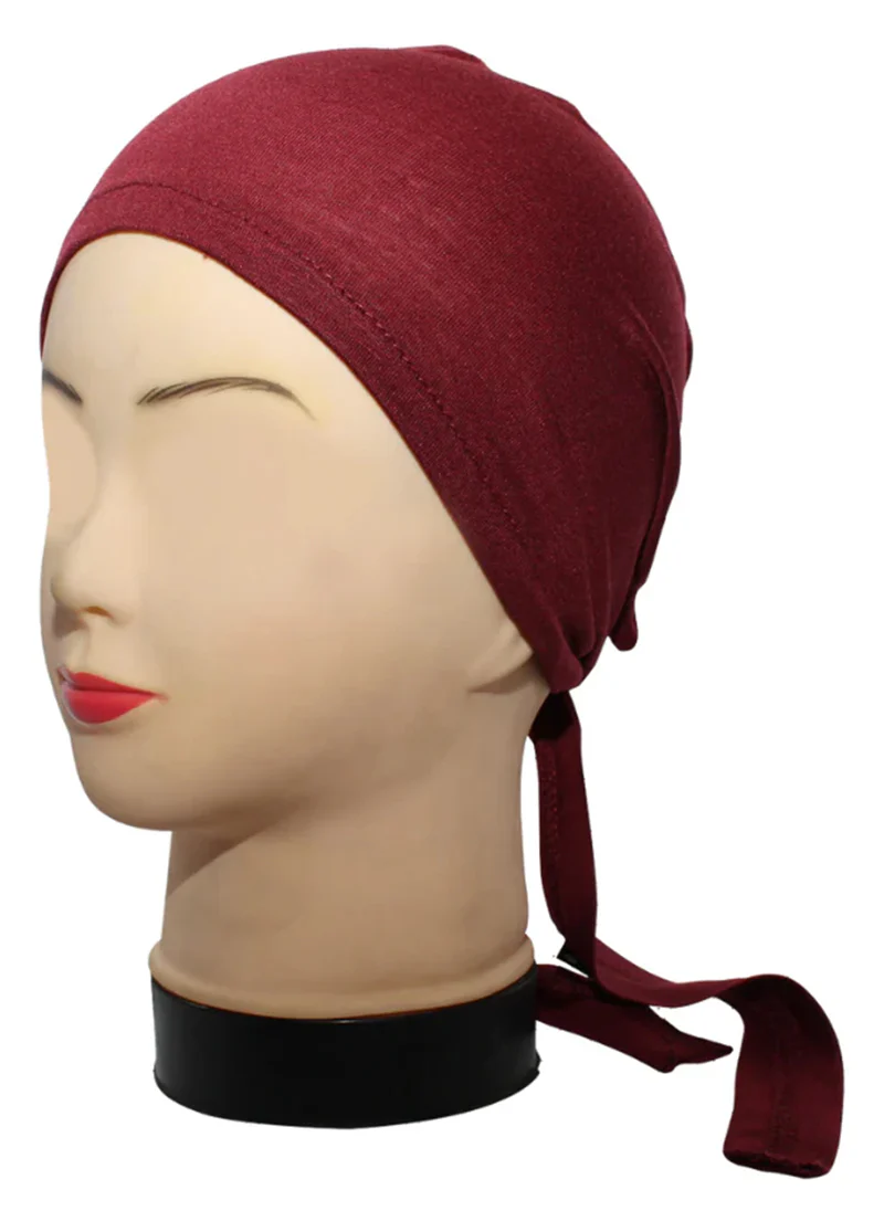 Maroon Plain Tie Bonnet Cap for Hijabs
