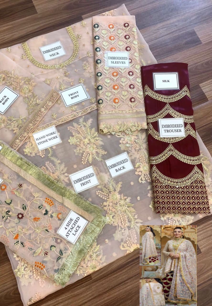 2Sides Heavy Embroidered Broders & 4 sides kiran lace attached same as original