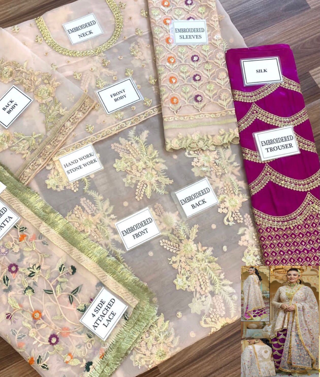 •Sleeves sequences Heavy Embroidered & with Sequences Embroidered sleeves cuff Attached on Fabric