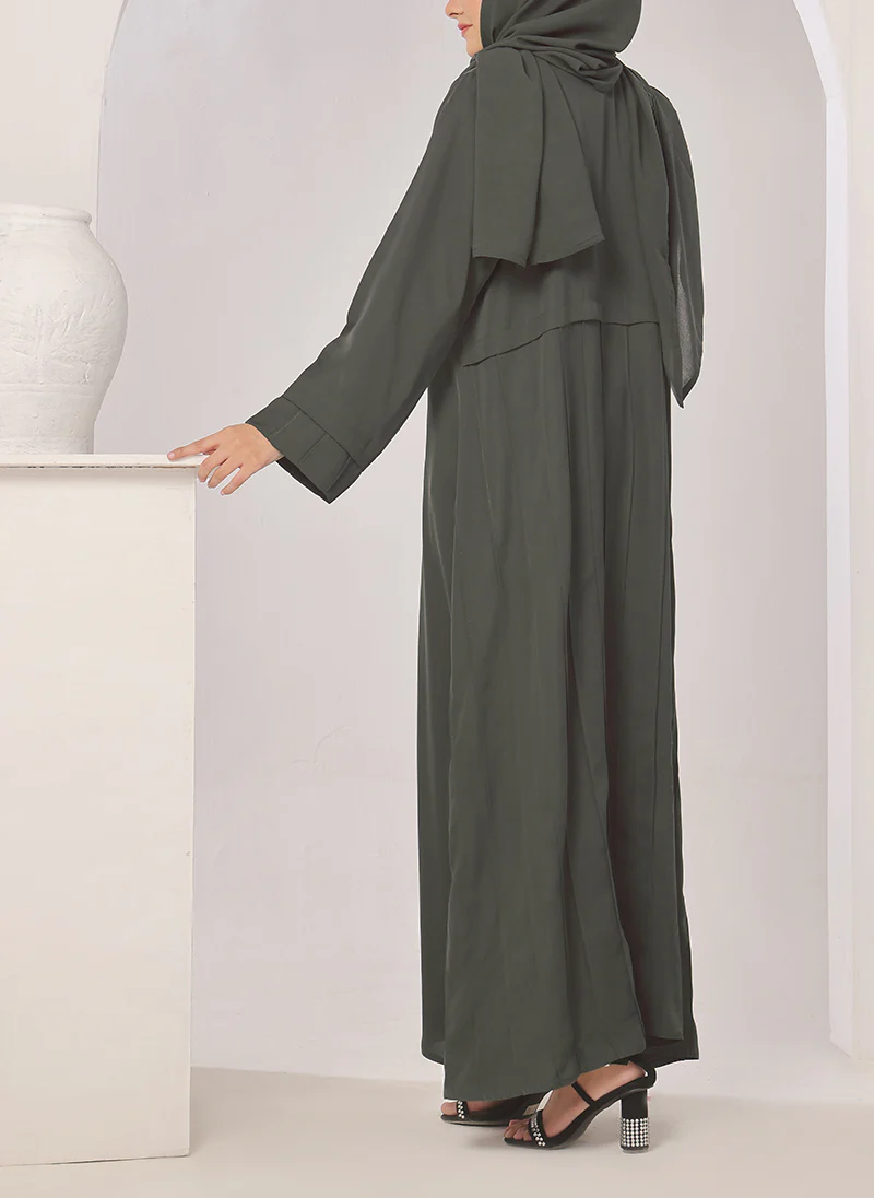 This Plates Front Open Grey Abaya is a stylish and versatile addition to any wardrobe. The unique plate front design adds a touch of elegance, while the convenient front opening allows for easy wear. Made with high-quality materials, this abaya offers comfort and durability for long-lasting use.