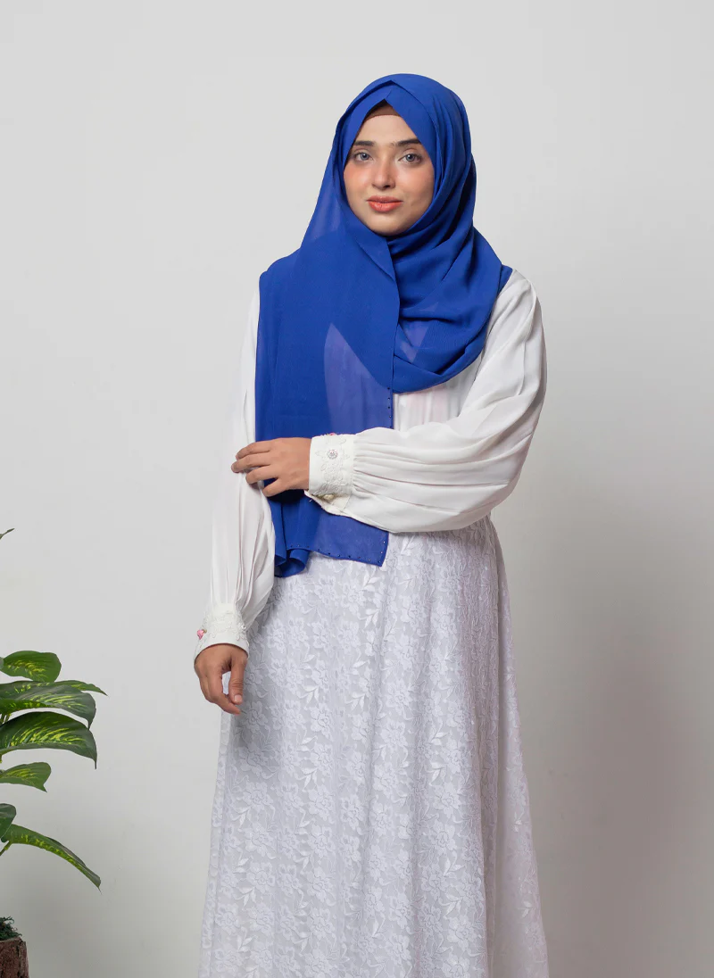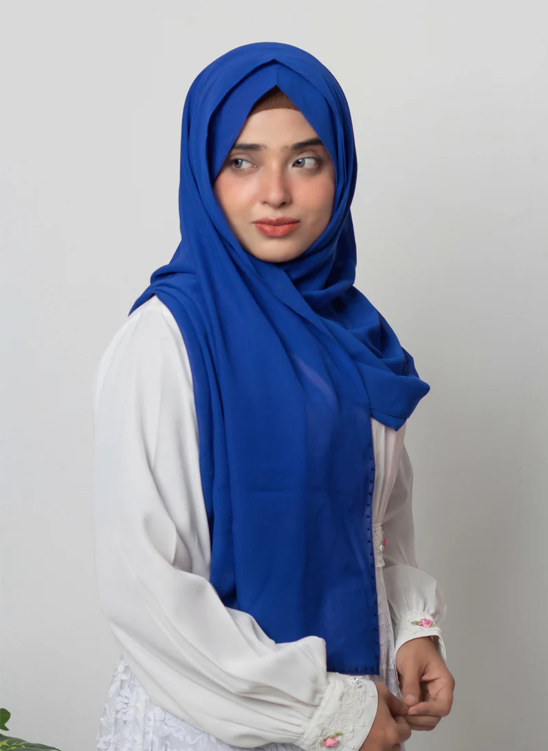 Elevate your style with Zara Hijab from HIjaulhareem’s collection, which it crafted from luxurious georgette fabric in classic blue color. This piece provides a touch of refined charm with versatile elegance.